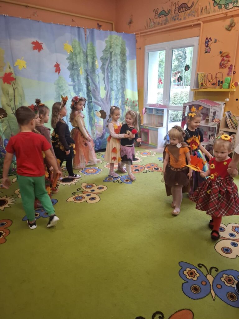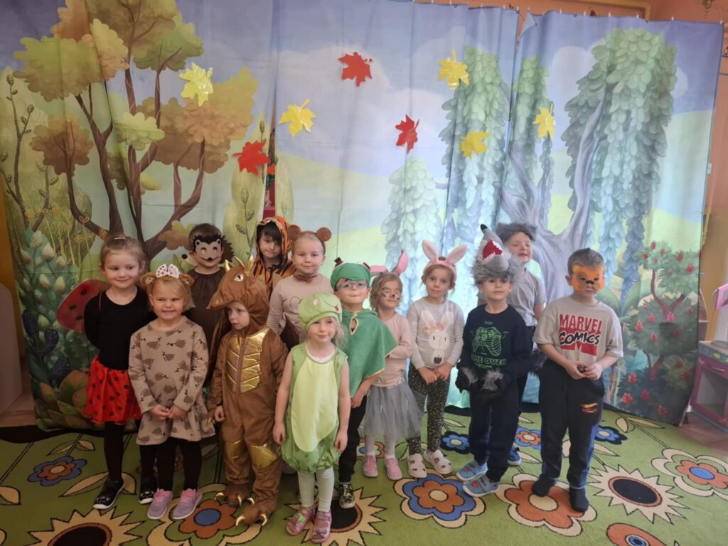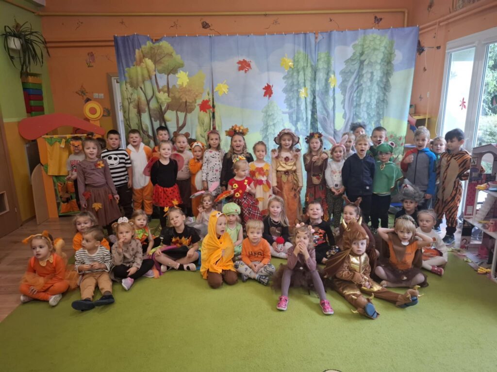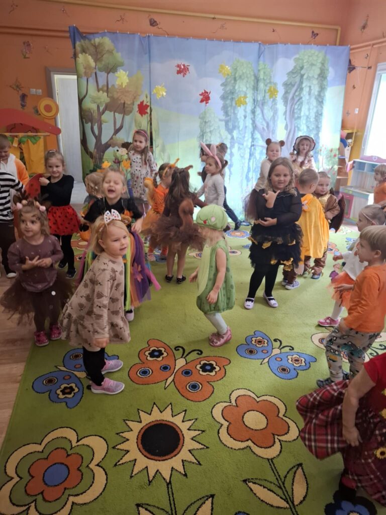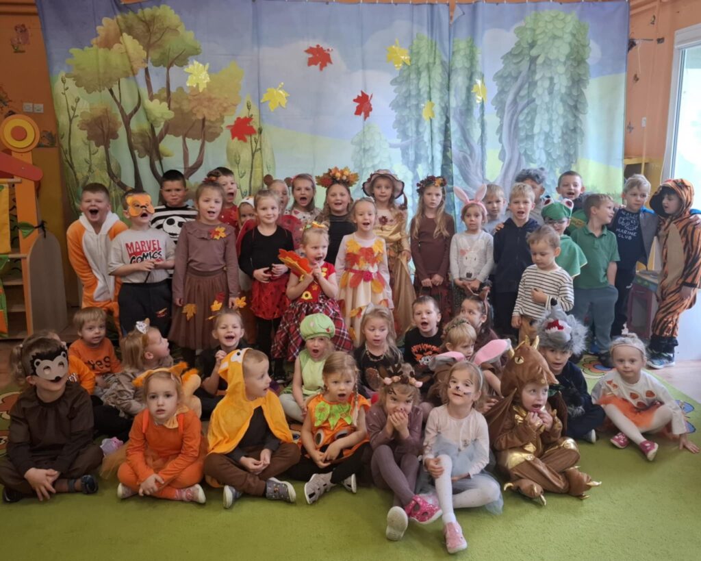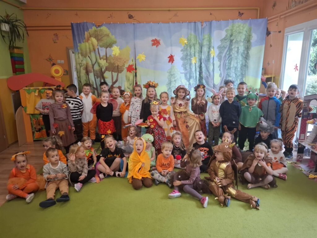 Pierwszy dzień października w Gminnym Przedszkolu w Widzewie upłynął pod znakiem kolorów, radości i jesiennej magii. Tego dnia odbył się długo wyczekiwany Bal Jesieni – wydarzenie, które na stałe wpisało się w kalendarz przedszkolnych uroczystości. Przedszkolaki przybyły ubrane w barwne stroje inspirowane darami jesieni – można było podziwiać małe dynie, liski, jeże. Sale przedszkolne zamieniły się w jesienny las. Bal rozpoczął się wspólnym tańcem przy jesiennych piosenkach. Dzieci brały udział w licznych zabawach ruchowych, konkursach tematycznych oraz pokazach strojów. Nie zabrakło też quizów o jesieni, zgadywanek i wspólnego śpiewania. Radość i śmiech rozbrzmiewały w całym przedszkolu. Na zakończenie dzieci otrzymały słodki upominek. Był to moment integracji i wspólnego świętowania darów natury.