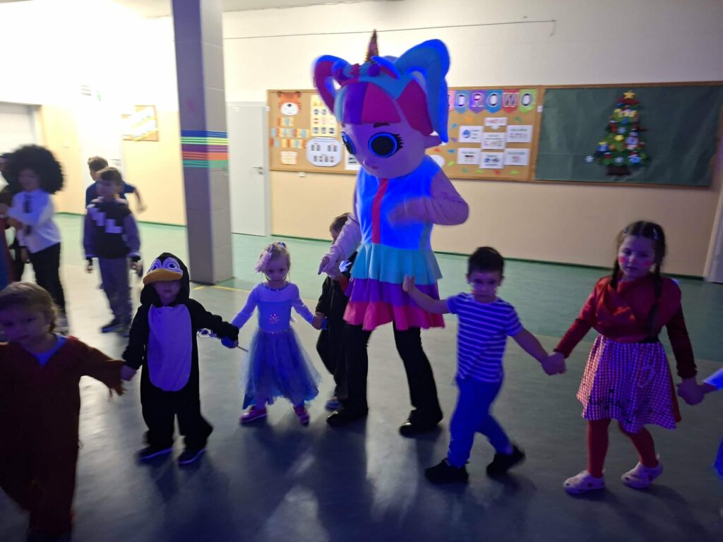 Dziś 16.01.2026r.,jak co roku, przedszkolaki wspólnie z dziećmi z ZSP w Ksawerowie bawiły się na wspólnym balu karnawałowym, pełnym muzyki, kolorów i radosnych zabaw. Wspólna zabawa była doskonałą okazją do integracji, poznania nowych kolegów i koleżanek oraz budowania pozytywnych relacji między najmłodszymi uczniami obu placówek. Dzieci tańczyły, uczestniczyły w konkursach i z dumą prezentowały swoje kolorowe stroje, ciesząc się atmosferą prawdziwego karnawałowego święta.