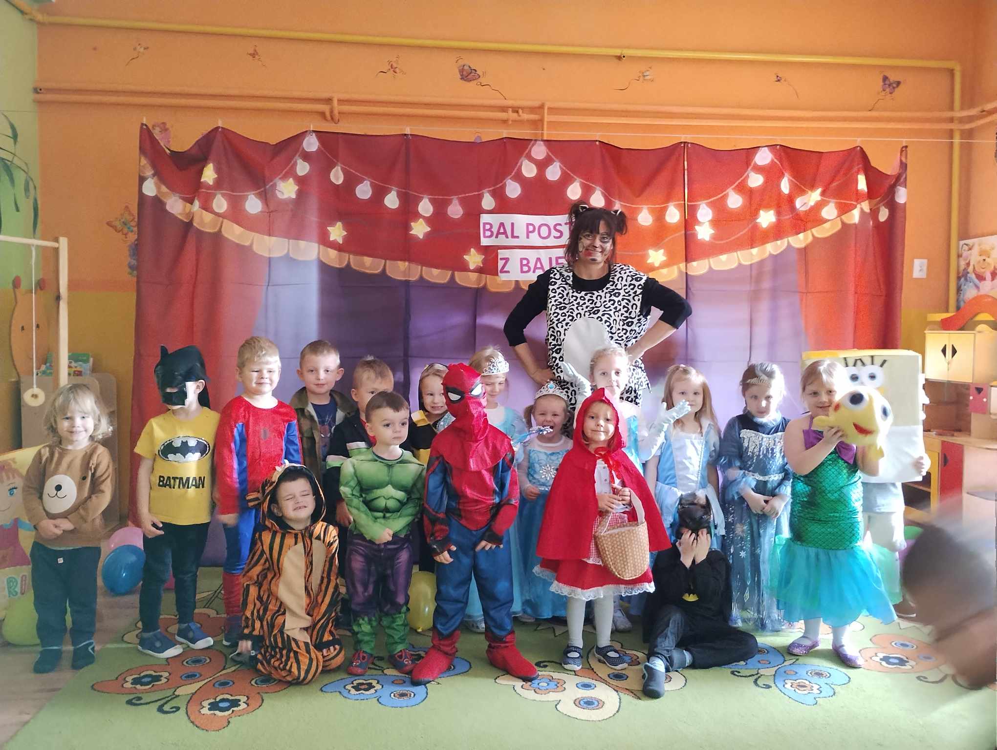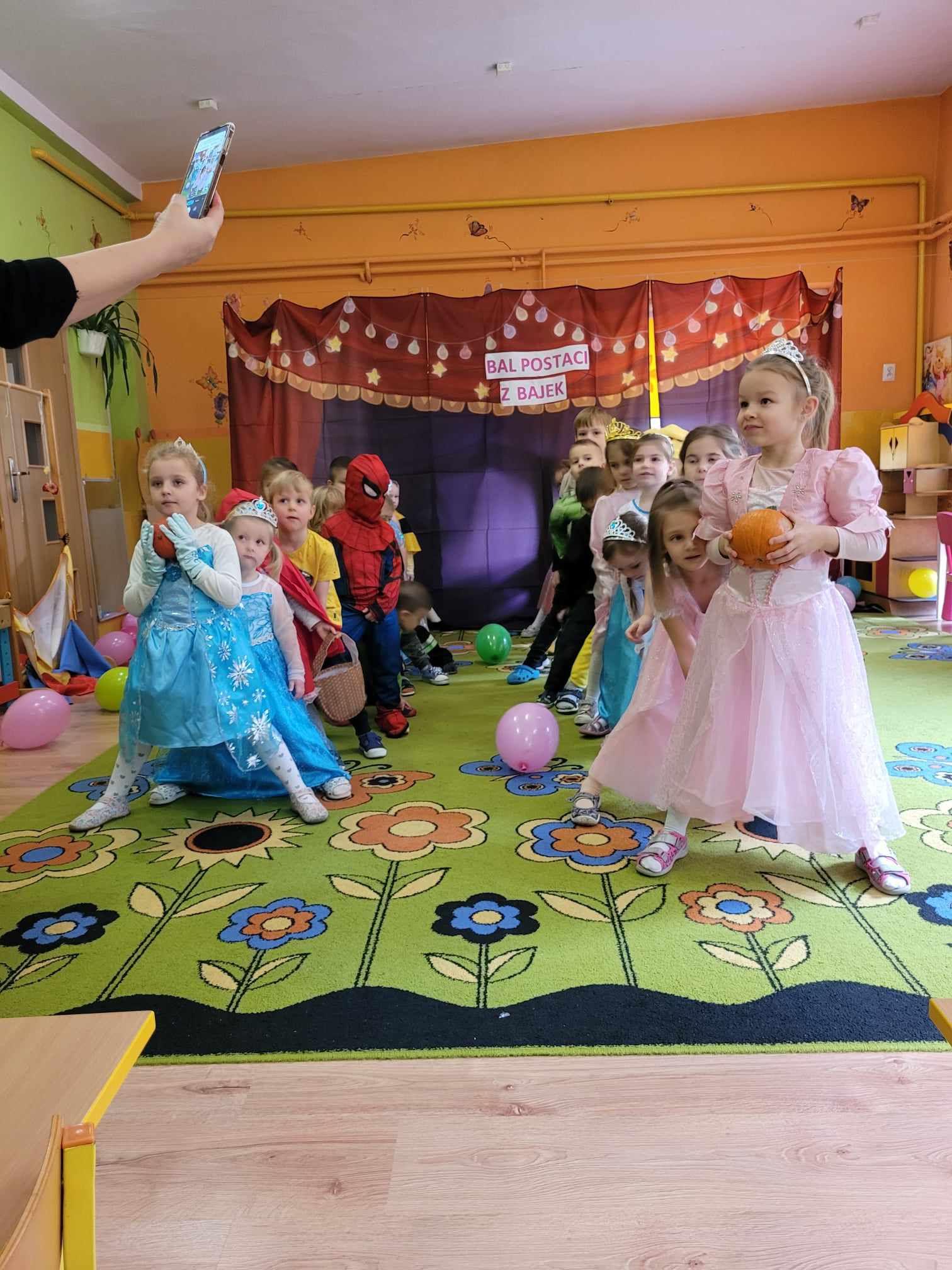 13.11.2023r. Bal postaci z bajek jest to święto wszystkich bajkowych postaci i dobry moment, aby przypomnieć sobie ulubionych bajkowych bohaterów, którzy są nieodzownym elementem dzieciństwa. W ten wyjątkowy dzień nasze przedszkole zamieniło się w wielką bajkową krainę. Pojawiły się księżniczki, królewicze, wróżki, rycerze, Elzy, myszka Miki, Spider-Men, jeże i inni bajkowi bohaterowie. Dzieci prezentowały wspaniałe przebrania, rozwiązywały zagadki, rozpoznawały bajki po rekwizytach, oraz kolorowały swoje ulubione postacie