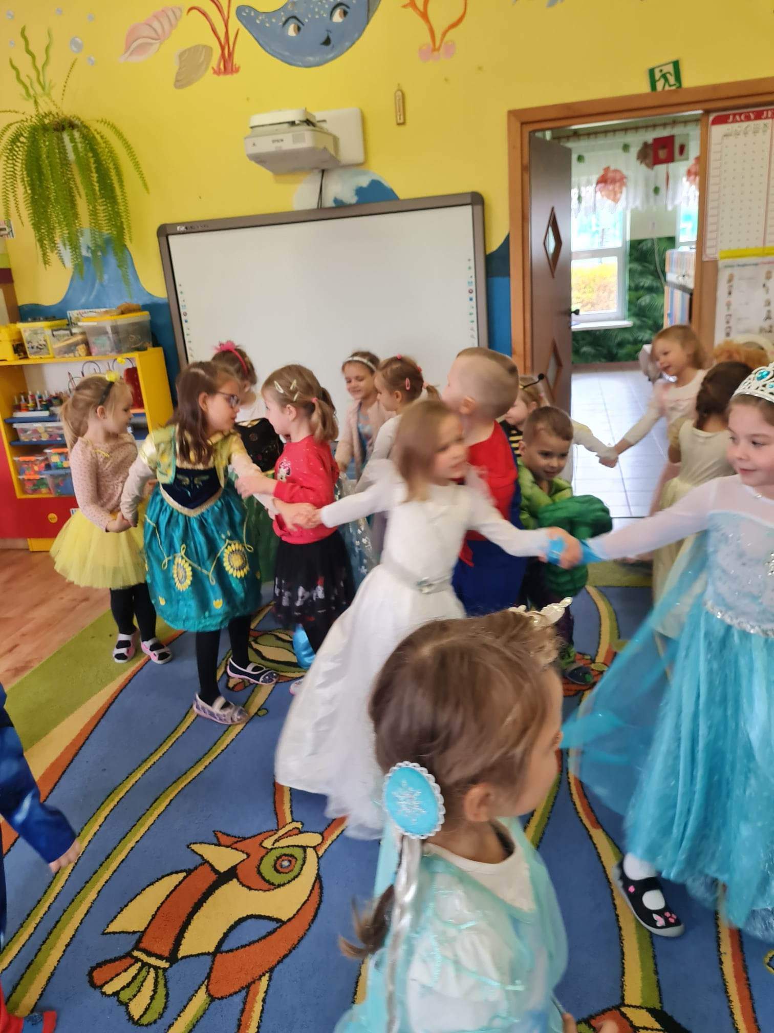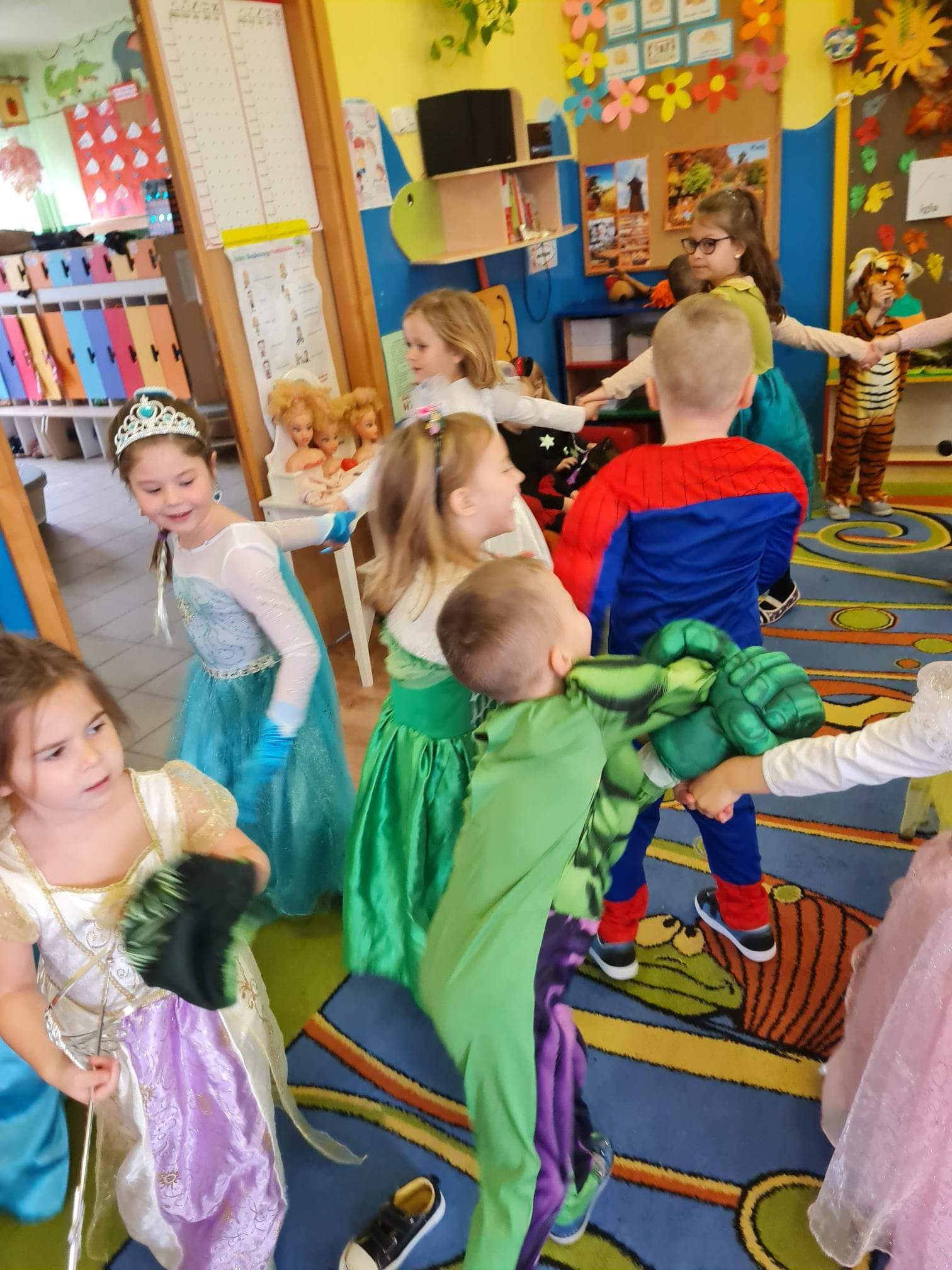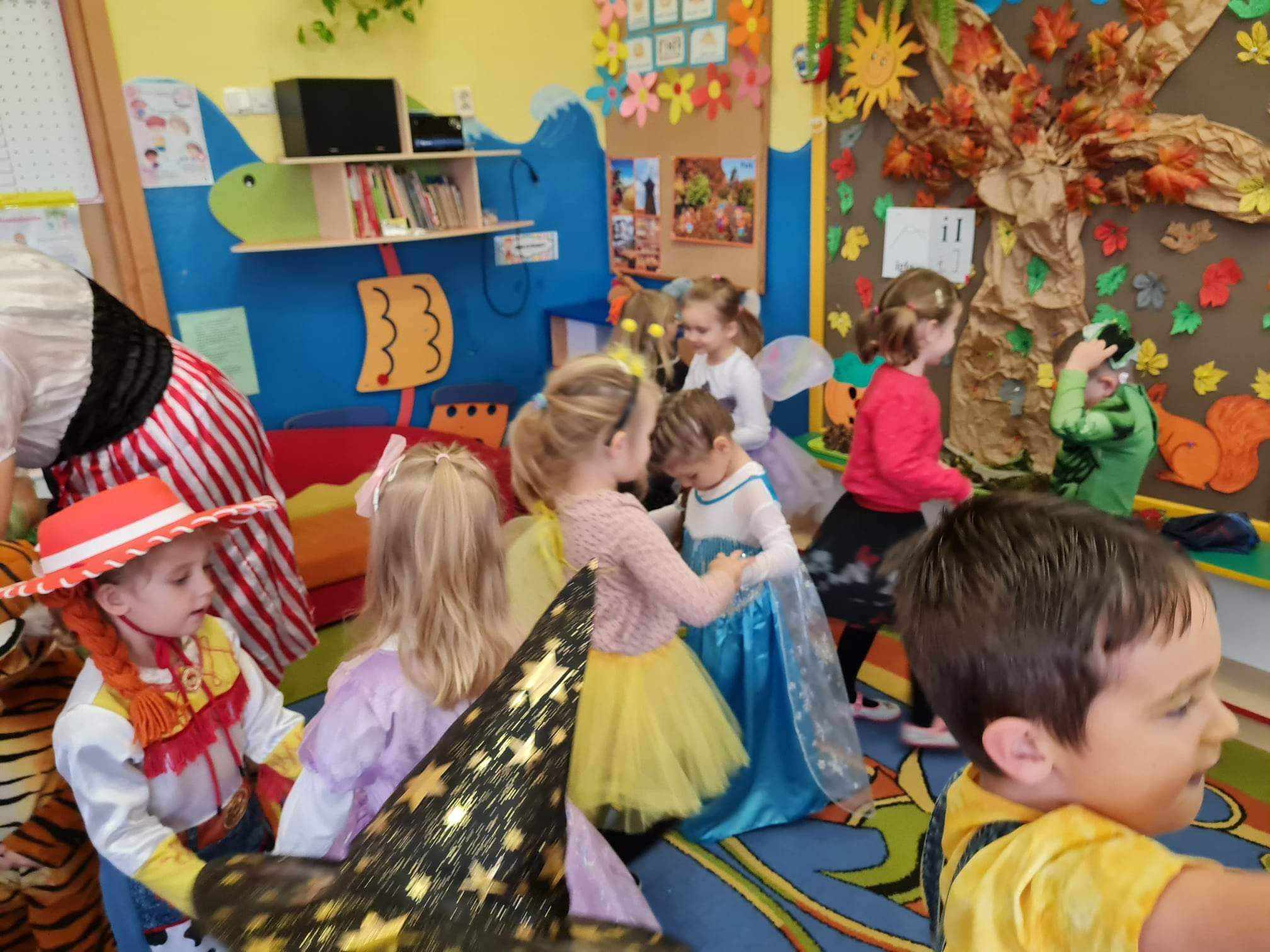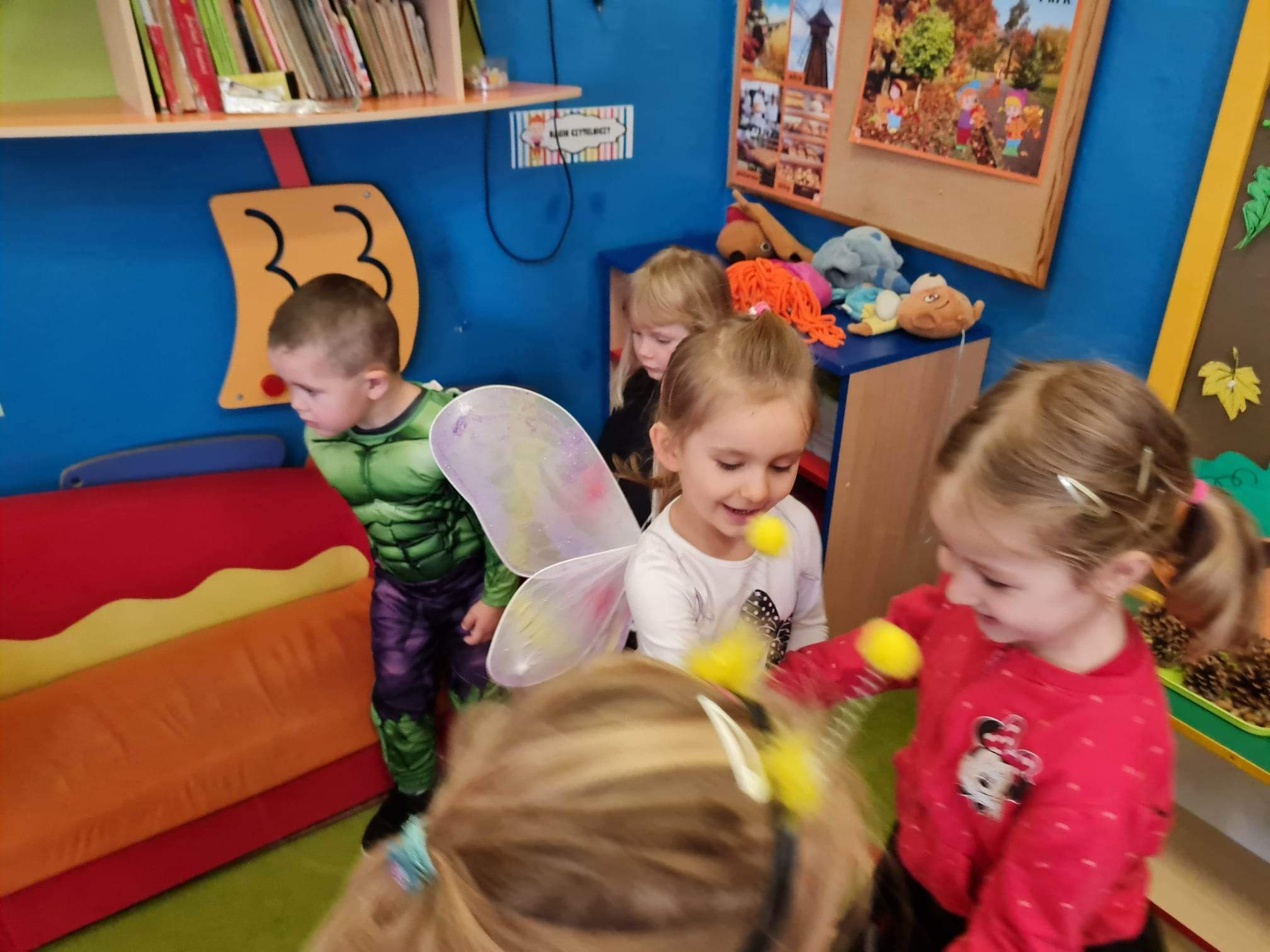 Dawno, dawno temu w malowniczej krainie o nazwie Ksawerów, wędrowały do Przedszkola królewny, księżniczki, Elzy, pszczółki, i inne postaci z przeróżnych bajek… 7.11.2022r obchodziliśmy Międzynarodowy Dzień Postaci z Bajek i to właśnie tego dnia nasze przedszkole zamieniło się w niezwykłą krainę bajkowych postaci. Motylki i Delfinki przebrały się za swojego ulubionego bohatera bajki. Były przeróżne konkursy i zagadki dotyczące bajek i występujących w nich postaci. Dzieci były zachwycone przebiegiem balu i swoim wspólnym towarzystwem. Niecodziennie Czerwony Kapturek ma okazję zatańczyć z Wilkiem, Śnieżka zjeść wspólny poczęstunek z Czarownicą a Kopciuszek zostać na balu do jego ostatniej sekundy. W naszym przedszkolu wszystko jest możliwe. Bo tu na co dzień dzieje się prawdziwa MAGIA!