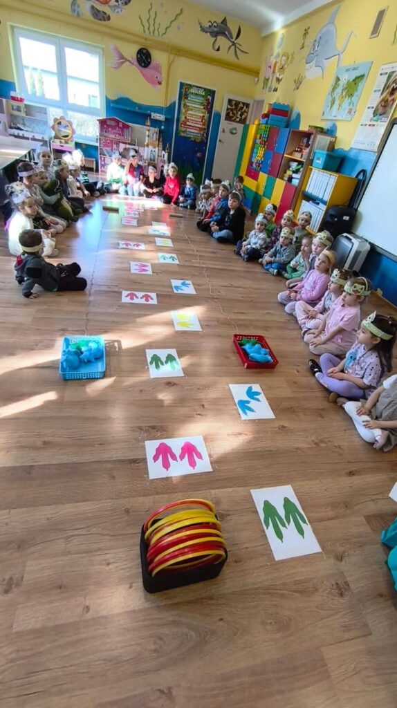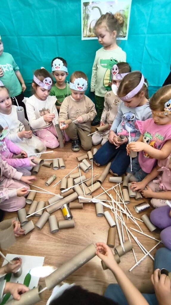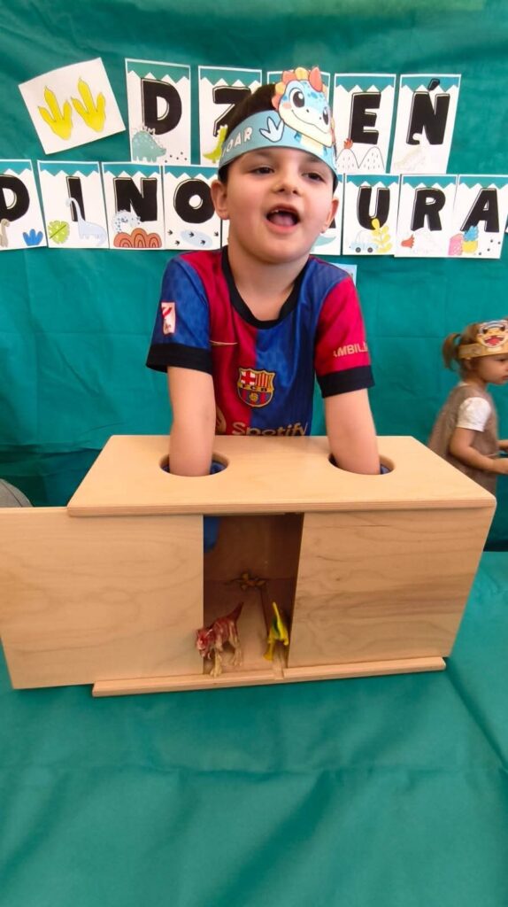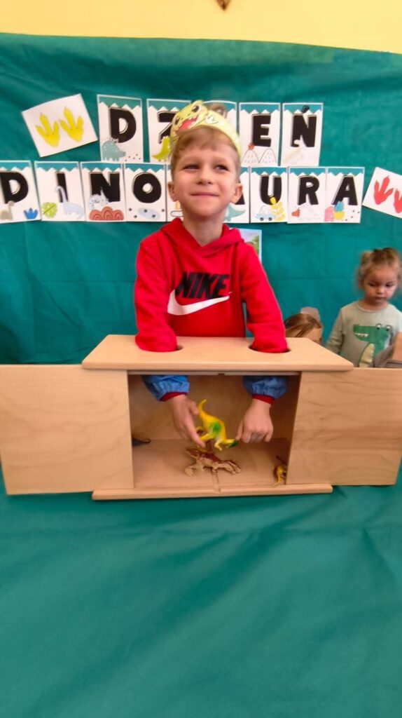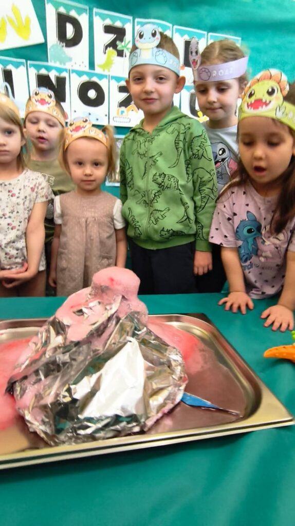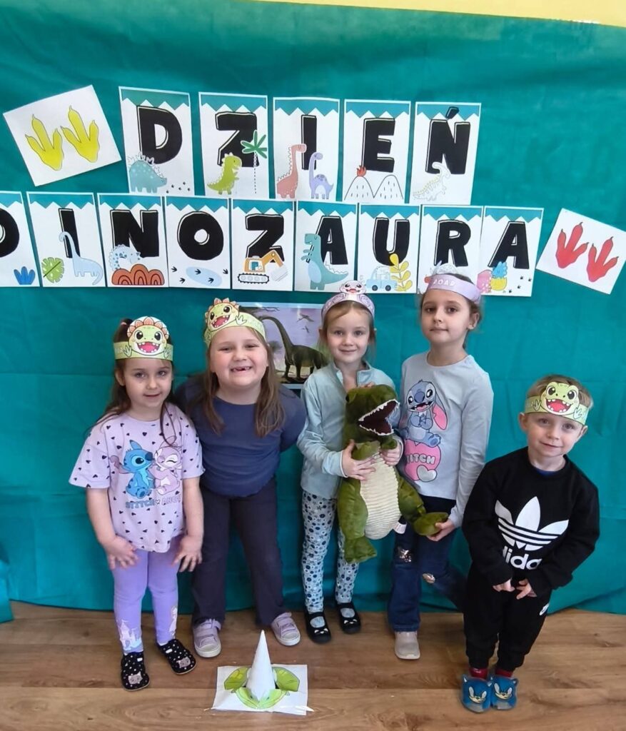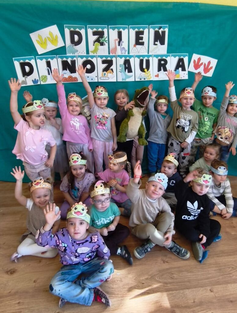 Dziś 26.02.2026r obchodziły Dzień Dinozaura, uczestnicząc w zajęciach rozwijających wiedzę, wyobraźnię i aktywność ruchową. Poznały najważniejsze gatunki dinozaurów, oglądały ilustracje oraz słuchały ciekawostek o życiu prehistorycznych zwierząt. W ramach działań plastycznych tworzyły własne dinozaury, a podczas zabaw tematycznych wcielały się w małych paleontologów, odkrywając „skamieliny” ukryte w sali. Całość uzupełniły zabawy ruchowe inspirowane sposobem poruszania się dinozaurów, które dostarczyły dzieciom wiele radości i wzmocniły integrację grupy.