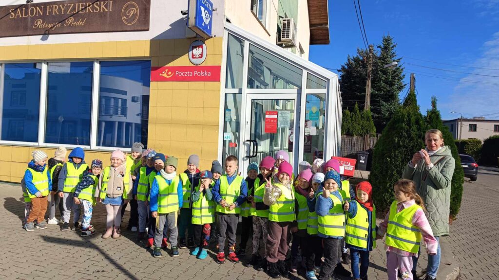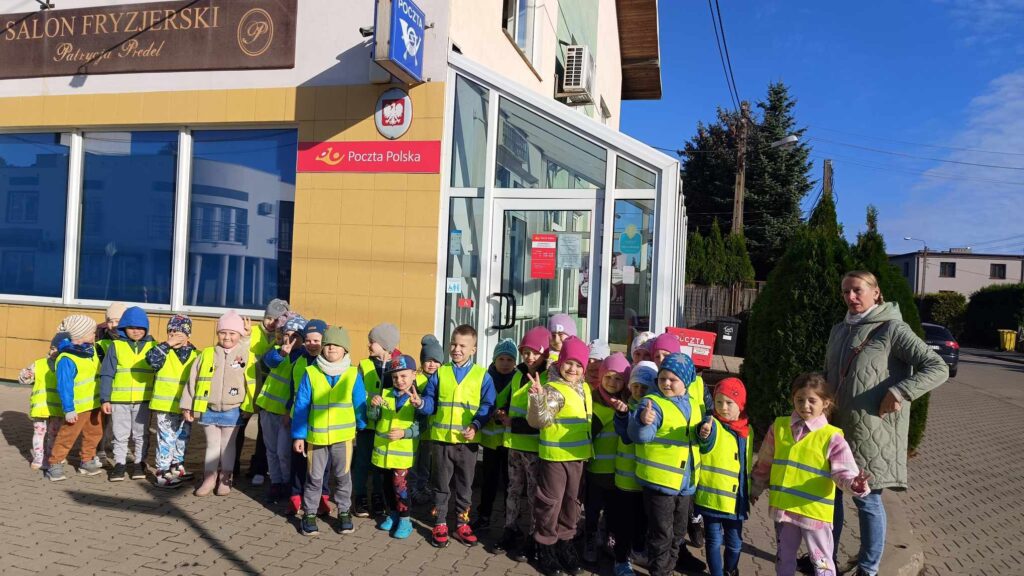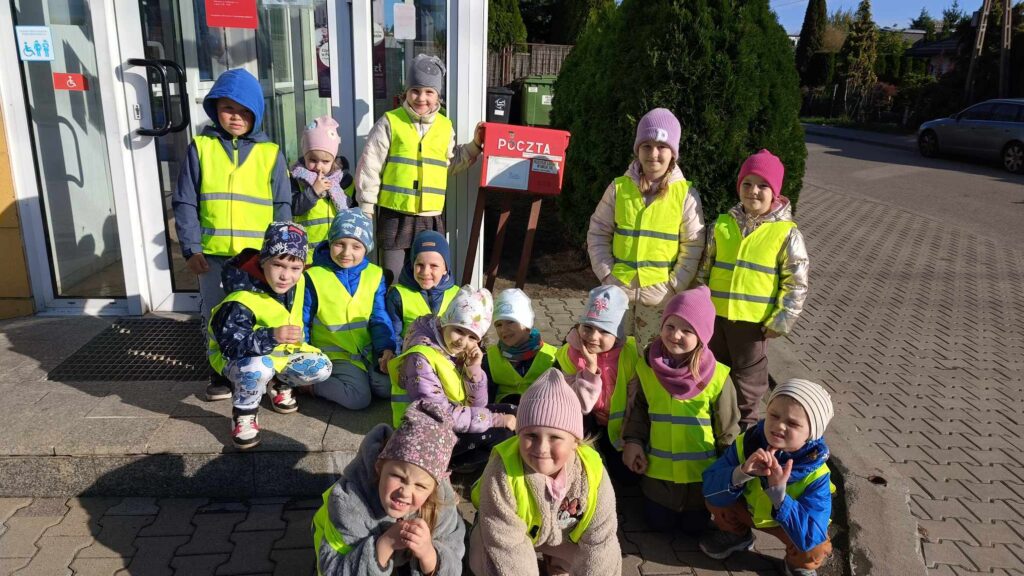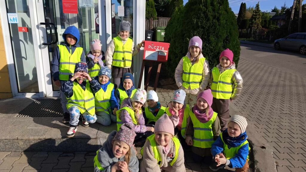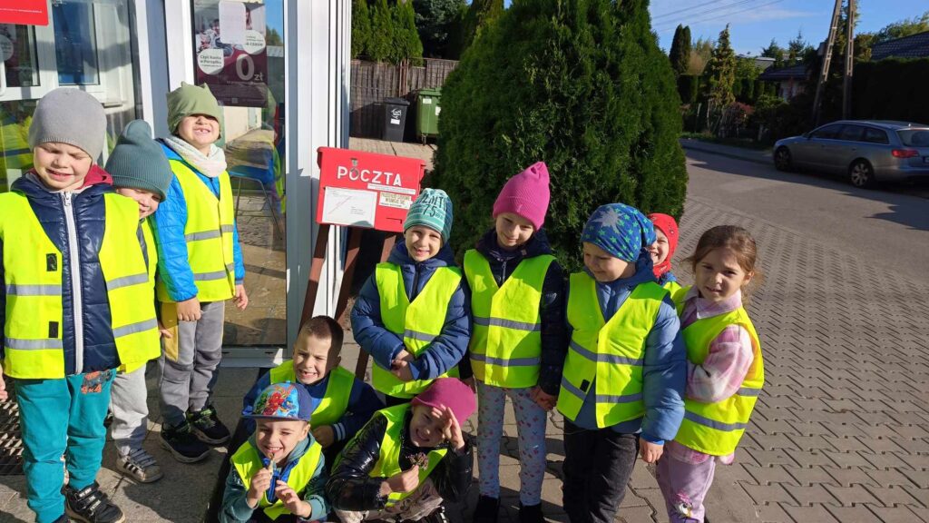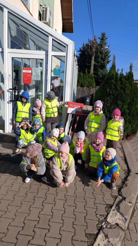Dnia 11 października z okazji Dnia Poczty Polskiej dzieci wybrały się na wycieczkę do Urzędu Poczty w Ksawerowie. Przedszkolaki miały okazję przyjrzeć się z bliska pracy urzędników pocztowych, poznać zakres usług wykonywanych na poczcie oraz dowiedziały się jak potrzebna i odpowiedzialna jest praca listonosza. Przy tej okazji przedszkolaki wysłały obrazkowy list do zaprzyjaźnionego przedszkola.