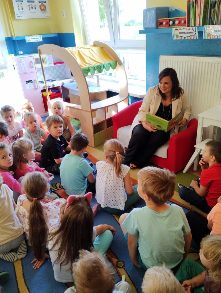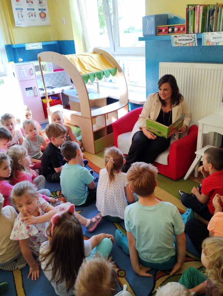29 września w naszym przedszkolu obchodziliśmy Ogólnopolski Dzień Głośnego Czytania. Celem akcji jest promowanie głośnego czytania dzieciom, nabywanie przyjemności z czytania i słuchania, a także poczucia przynależności do społeczności czytelniczej. W ramach tej akcji Pani Wicedyrektor Lucyna Kasznicka przeczytała opowiadanie pt. W krainie dinozaurów” Przedszkolaki z zaciekawieniem wysłuchały opowiadania. Gorąco zachęcamy rodziców do codziennego głośnego czytania dzieciom gdyż nie tylko wspieramy rozwój psychiczny i intelektualny dzieci, ale sami też często doświadczamy radości, jaką daje kontakt z pięknym tekstem. Czytanie na głos stymuluje rozwój dzieci, wzbogaca ich słownictwo oraz rozwija wyobraźnię. Warto i trzeba czytać dzieciom! Tej zasady się trzymamy i codziennie głośno czytamy!