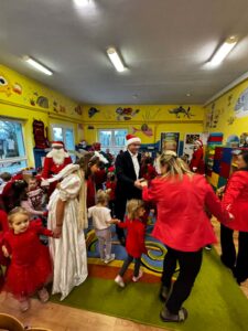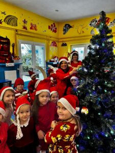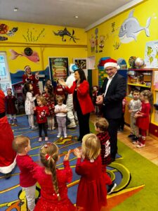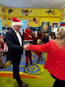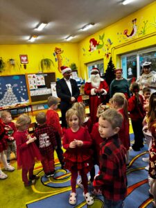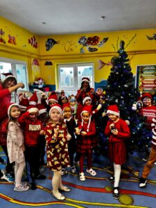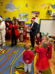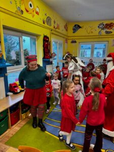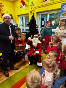 Dnia 5 grudnia 2025 roku w naszym przedszkolu odbyło się niezwykle radosne wydarzenie pełne atrakcji i świątecznej atmosfery. Na początek dnia przedszkolaki wspólnie dekorowały choinki w swoich salach. Kolorowe bombki, łańcuchy