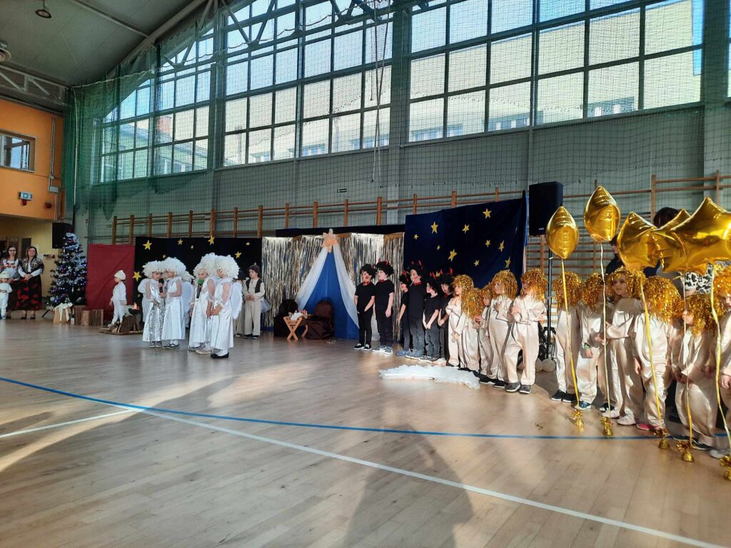 i pastorałki, dzięki którym stworzyły wspaniałą, świąteczną atmosferę i podbiły serca całej widowni. Na koniec pani dyrektor Maria Szaszkiewicz, pan Adam Topolski podziękowali za występ i złożyli wszystkim życzenia. Takie podniosłe chwile nie tylko utrwalają dzieciom znajomość tradycji i zwyczajów świątecznych, lecz wzmacniają serdeczne relacje między nami.