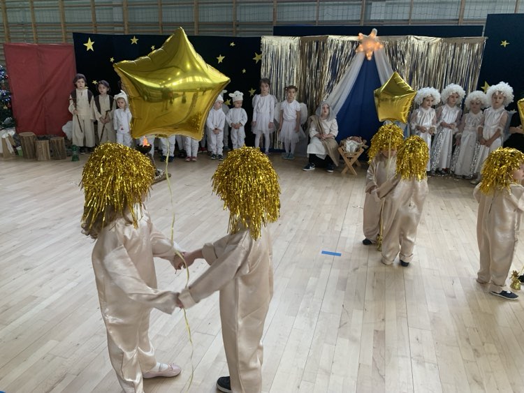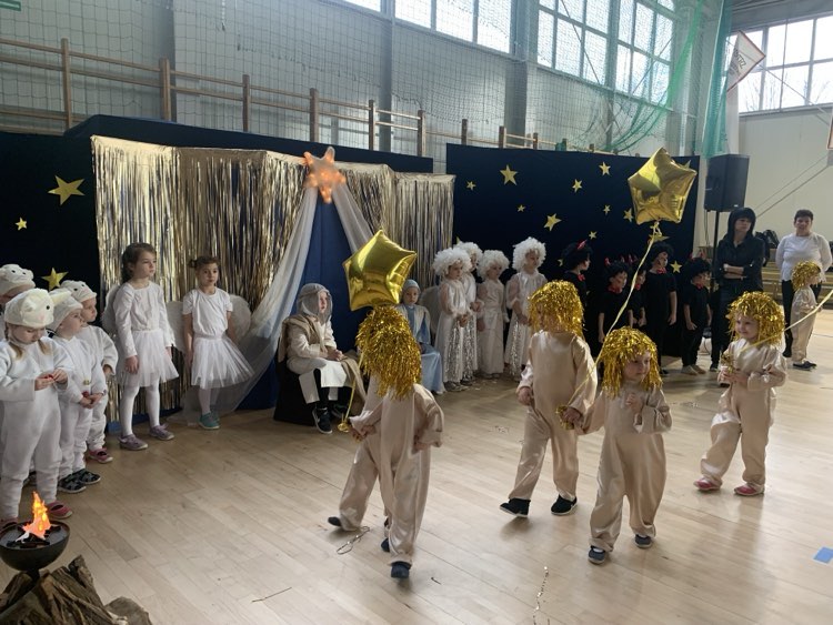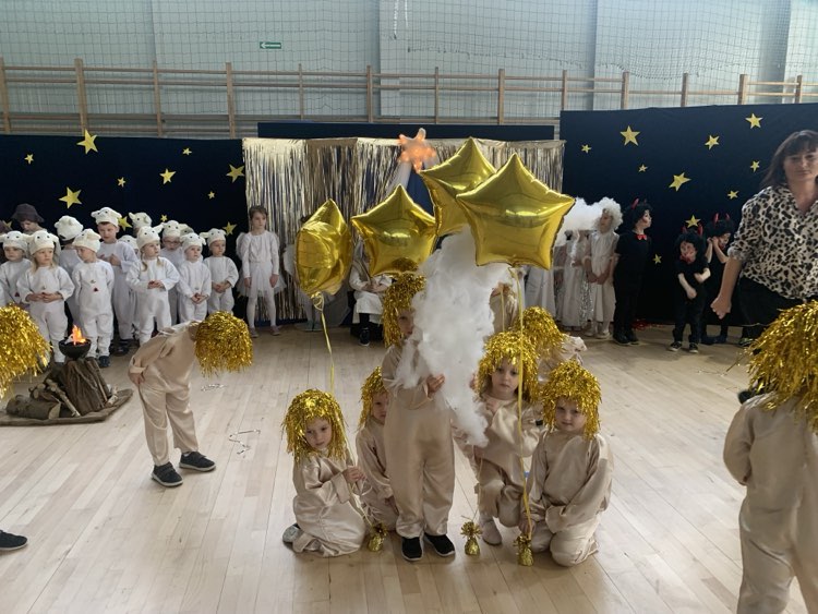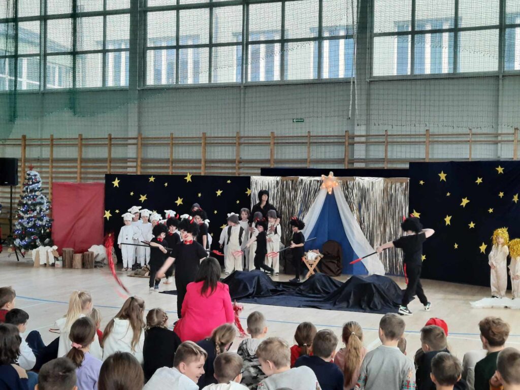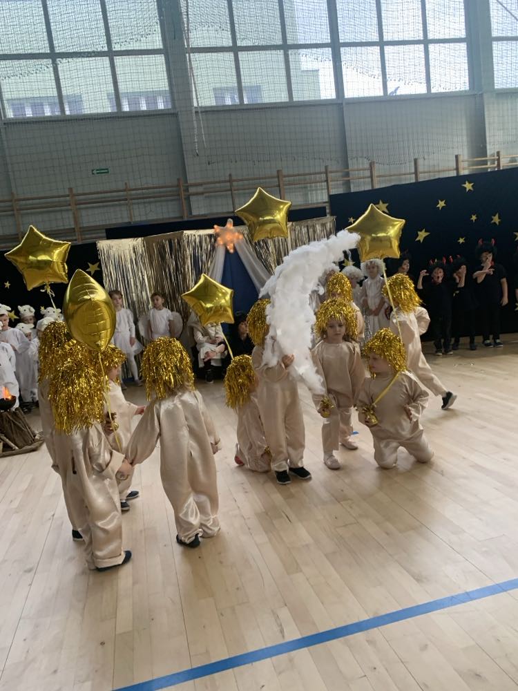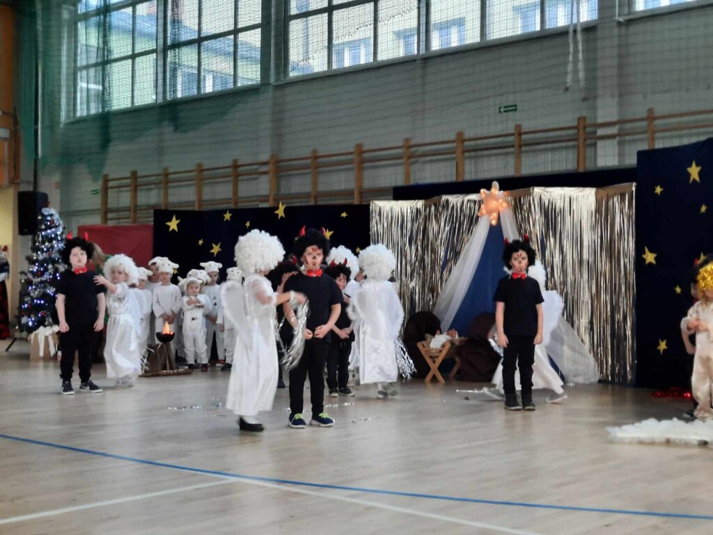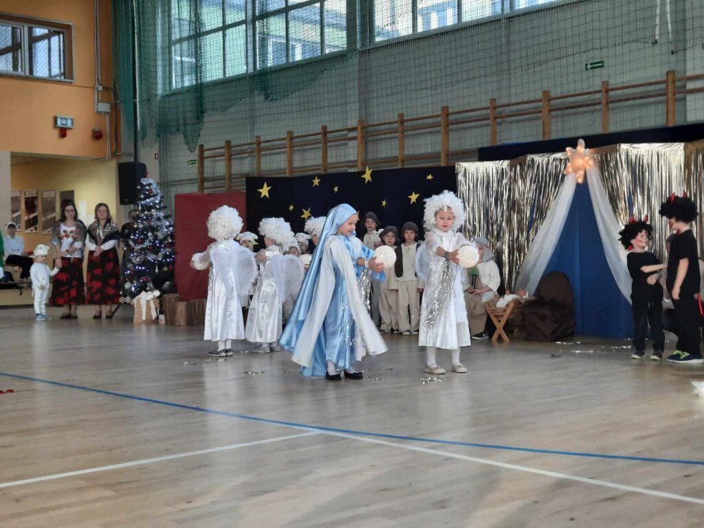 i pastorałki, dzięki którym stworzyły wspaniałą, świąteczną atmosferę i podbiły serca całej widowni. Na koniec pani dyrektor Maria Szaszkiewicz, pan Adam Topolski podziękowali za występ i złożyli wszystkim życzenia. Takie podniosłe chwile nie tylko utrwalają dzieciom znajomość tradycji i zwyczajów świątecznych, lecz wzmacniają serdeczne relacje między nami.