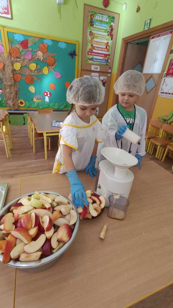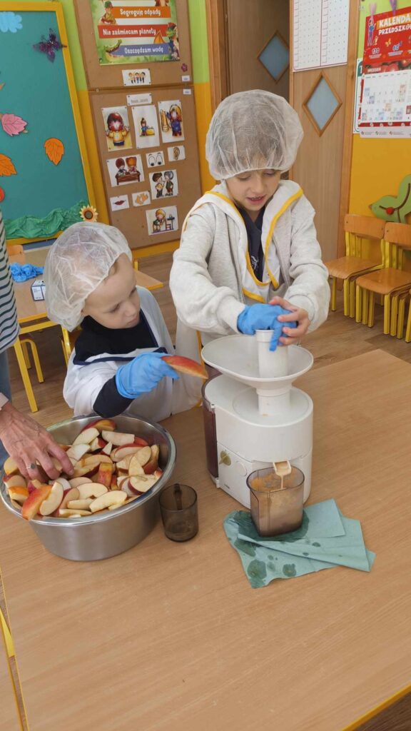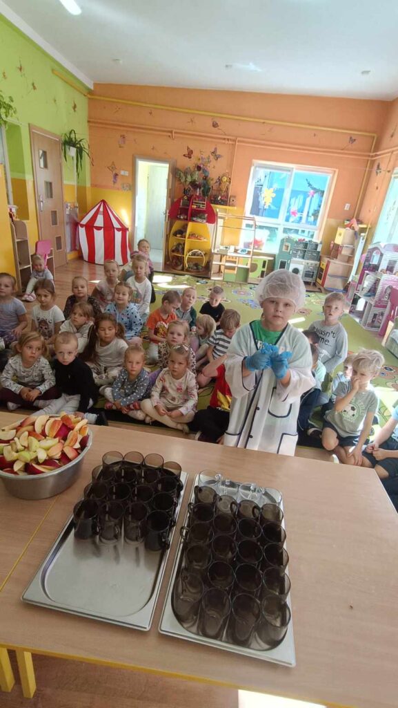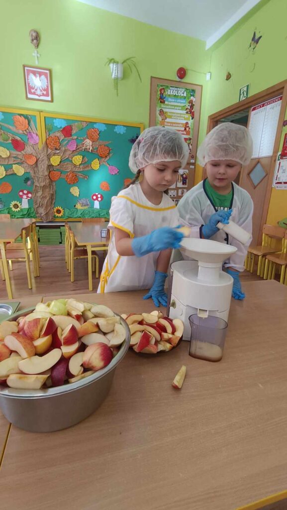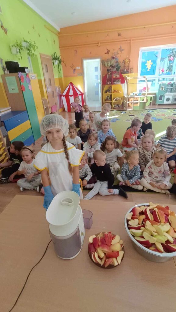 Soki to nie tylko doskonałe źródło witamin i cennych składników, ale są pyszniejsze niż słodycze. Przekonały się o tym dzieci z grupy “Motylków” i „Delfinków”, które w miniony piątek (27.09.2024r) podczas zajęć wyczarowały pyszne owocowe soki 🙂