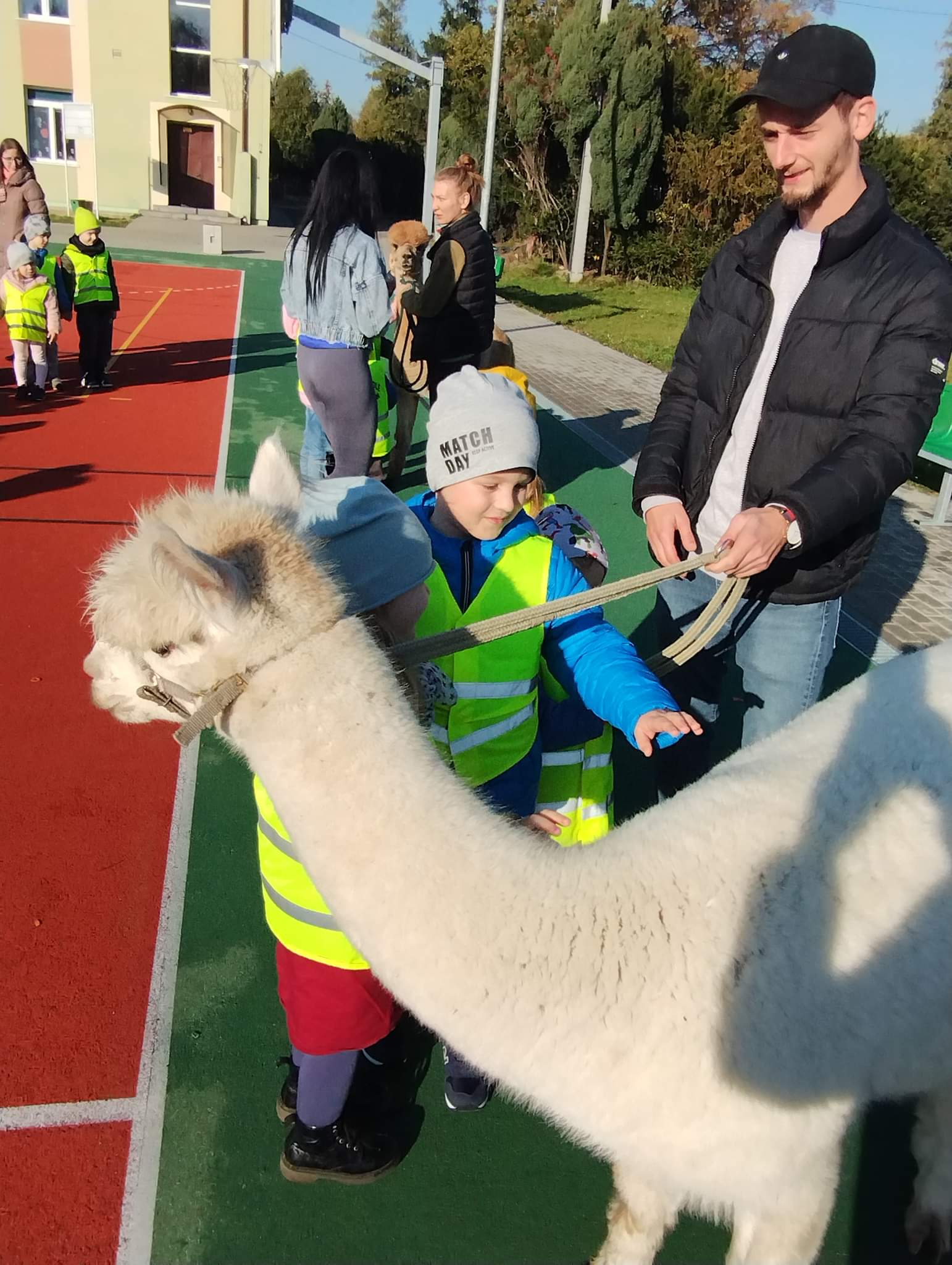 27.10.2022r. Przedszkolaki wybrały się do Szkoły Podstawowej w Ksawerowie na spotkanie z przesłodkimi alpakami- Lenkiem i Vitem. Opiekunowie alpak opowiedzieli dzieciom o zwyczajach i upodobaniach tych łagodnych i trochę płochliwych zwierząt. Po krótkim wykładzie przyszedł czas na praktykę. Dzieci mogły pogłaskać nowych przyjaciół, nakarmić marchewką. Na koniec spotkania chętne dzieci przytulały sympatyczne zwierzątka.