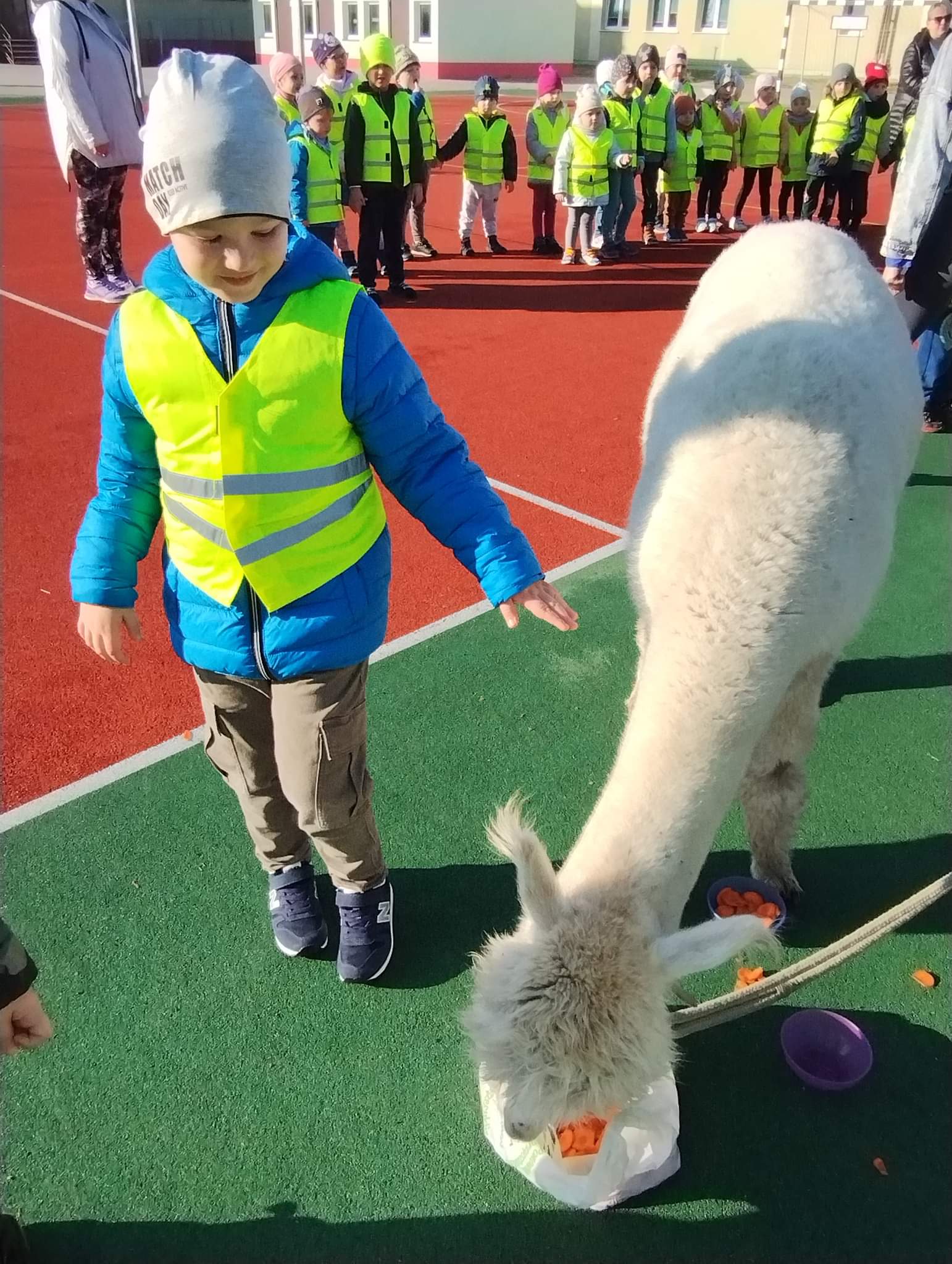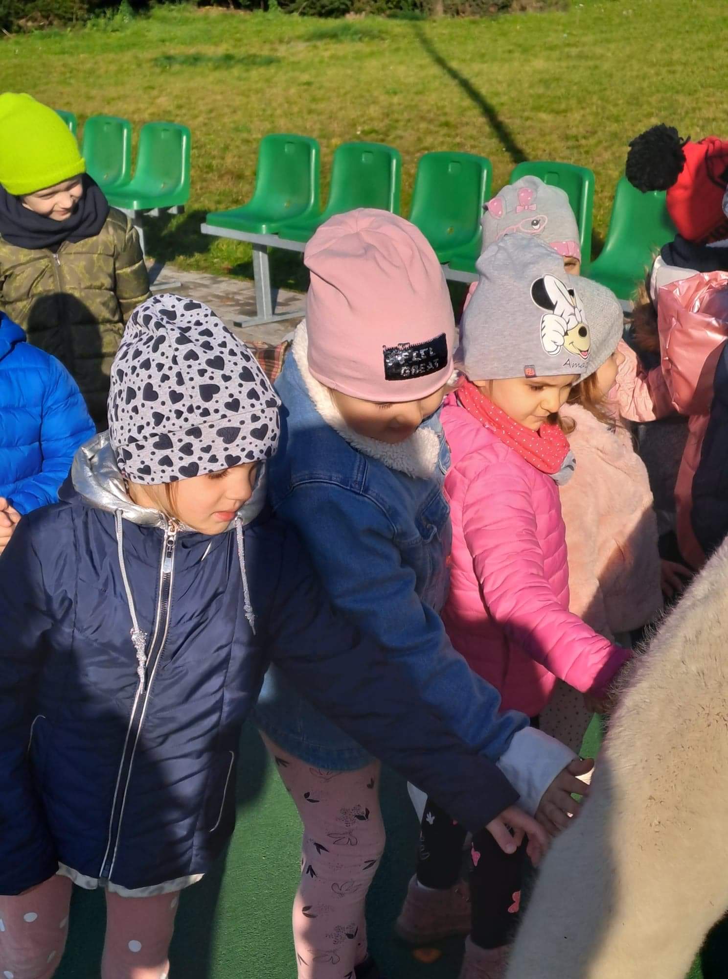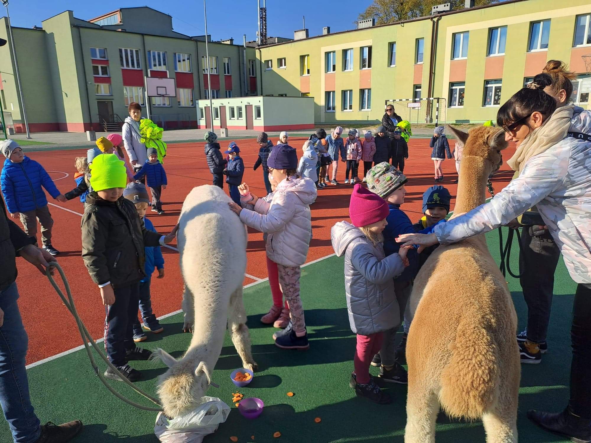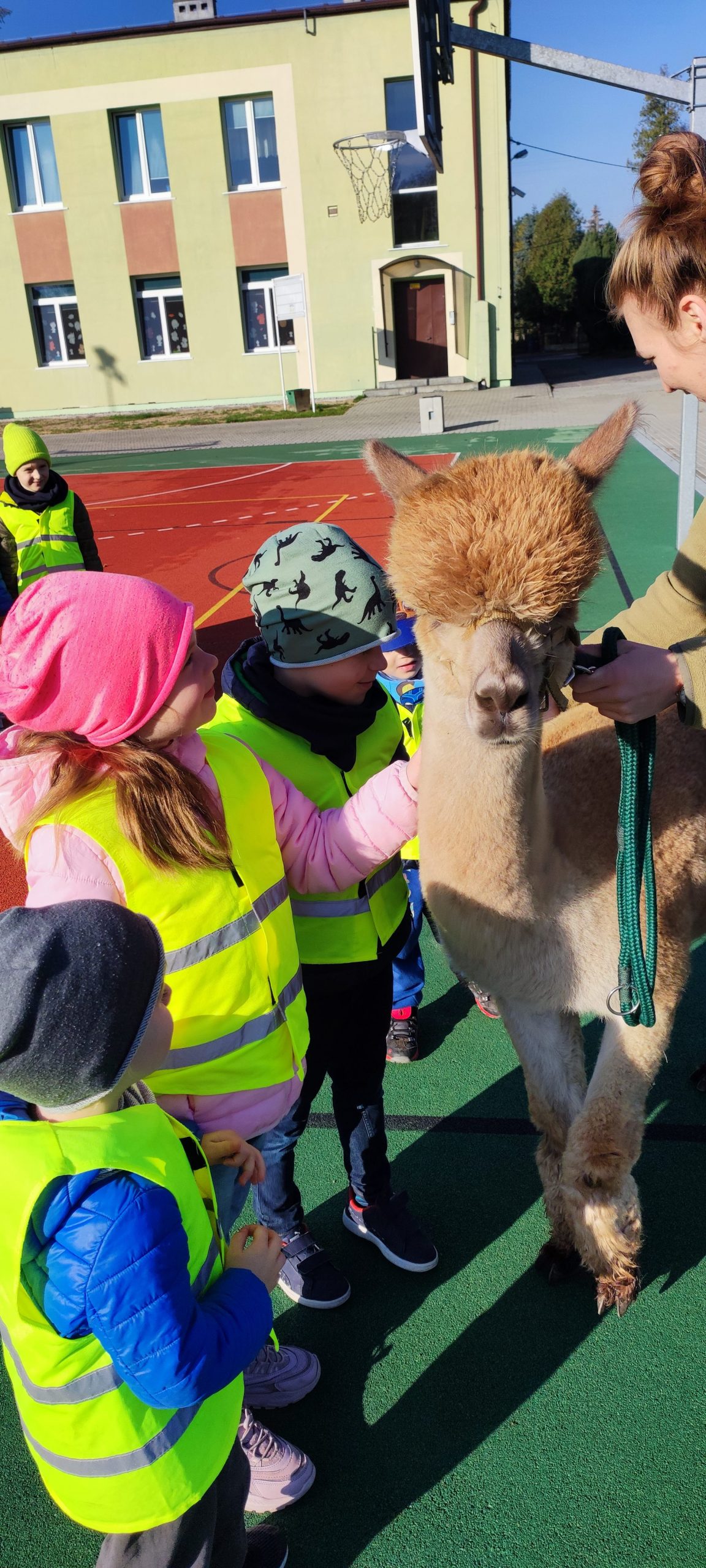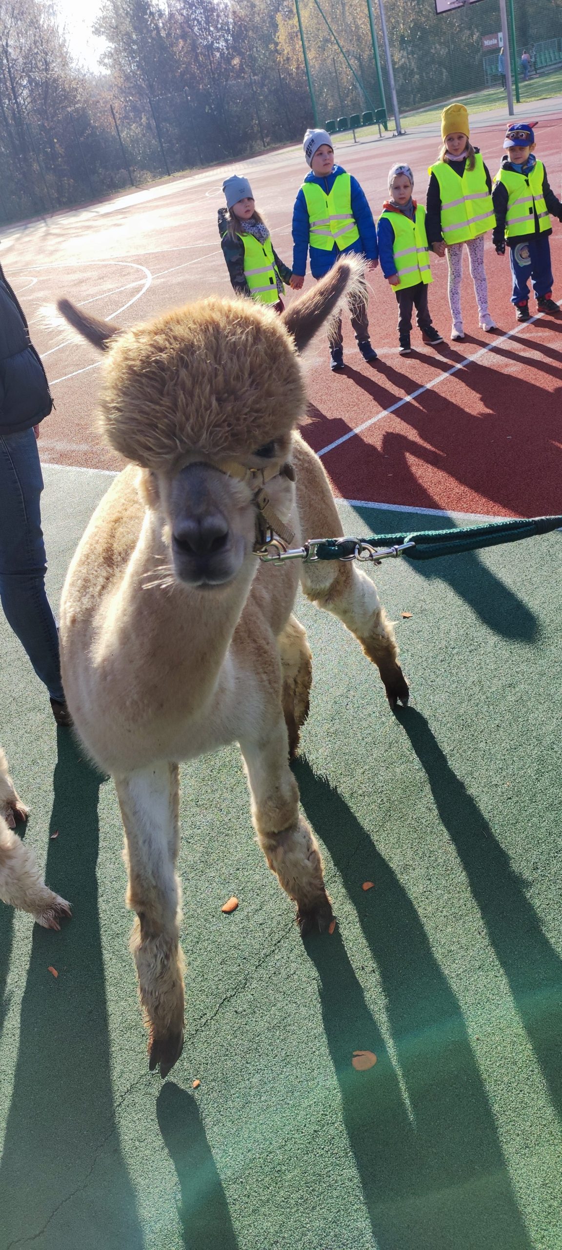 27.10.2022r. Przedszkolaki wybrały się do Szkoły Podstawowej w Ksawerowie na spotkanie z przesłodkimi alpakami- Lenkiem i Vitem. Opiekunowie alpak opowiedzieli dzieciom o zwyczajach i upodobaniach tych łagodnych i trochę płochliwych zwierząt. Po krótkim wykładzie przyszedł czas na praktykę. Dzieci mogły pogłaskać nowych przyjaciół, nakarmić marchewką. Na koniec spotkania chętne dzieci przytulały sympatyczne zwierzątka.