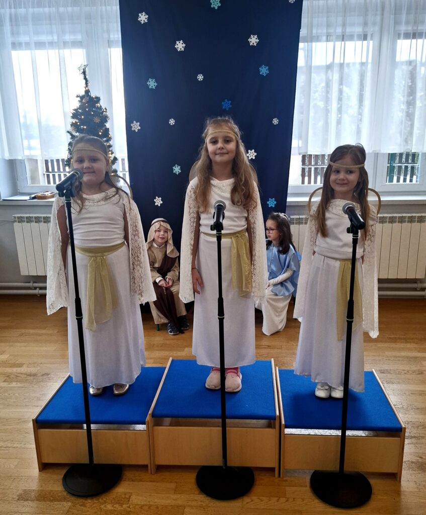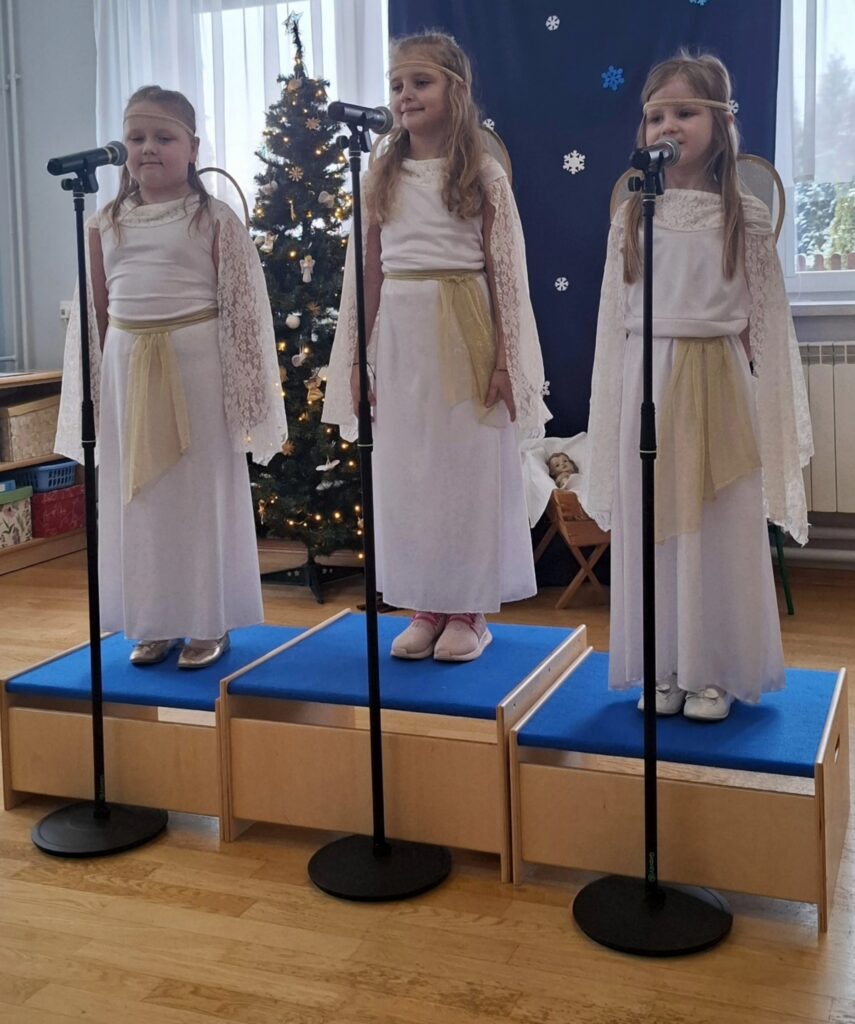 w świąteczny, pełen ciepła i radości nastrój. Ich odwaga, zaangażowanie i piękny śpiew zostały nagrodzone gromkimi brawami. To był moment pełen dumy — zarówno dla dziewczynek, jak i dla całej społeczności przedszkola. Dziękujemy rodzicom za wsparcie, a naszym reprezentantkom gratulujemy wspaniałego występu, który na długo pozostanie w naszej pamięci.