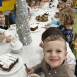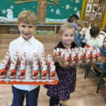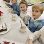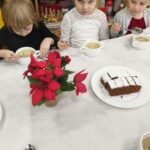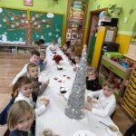 Zgodnie z piękną tradycją Świąt Bożego Narodzenia, kiedy zasiadamy z rodziną do wspólnej wieczerzy, również nasze przedszkole – jako jedna wielka, zżyta społeczność – obchodzi swoją własną wigilię. 15 grudnia, jak co roku w okresie przedświątecznym, zorganizowaliśmy uroczyste spotkanie, które wprowadziło wszystkich w wyjątkowy, świąteczny nastrój. Tego dnia odbyło się również rozstrzygnięcie konkursu na najpiękniejszy stroik bożonarodzeniowy. Uczestnicy otrzymali pamiątkowe dyplomy oraz drobne upominki. Na zakończenie uroczystości na dzieci czekała jeszcze jedna niespodzianka — każde z nich otrzymało słodkiego Mikołaja, który wywołał wiele radości i uśmiechów. Był to piękny akcent, który dopełnił świąteczną atmosferę tego wyjątkowego dnia.