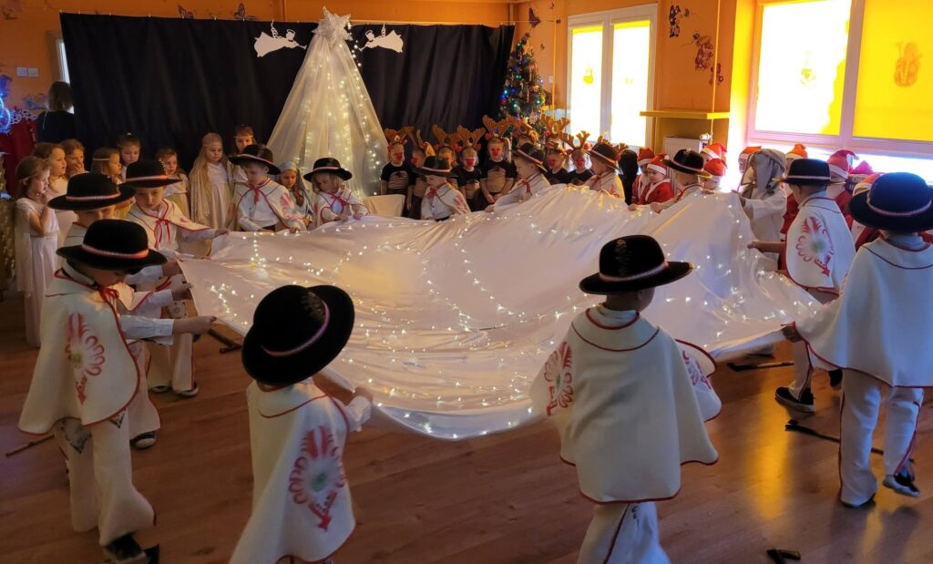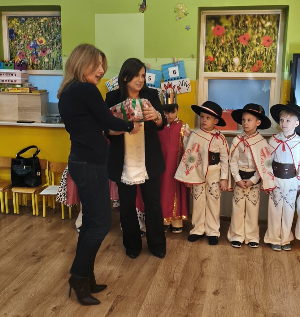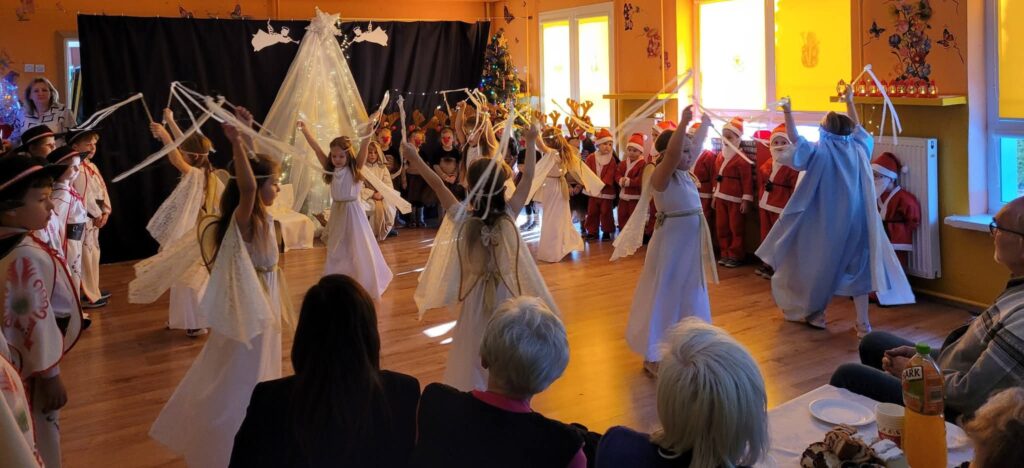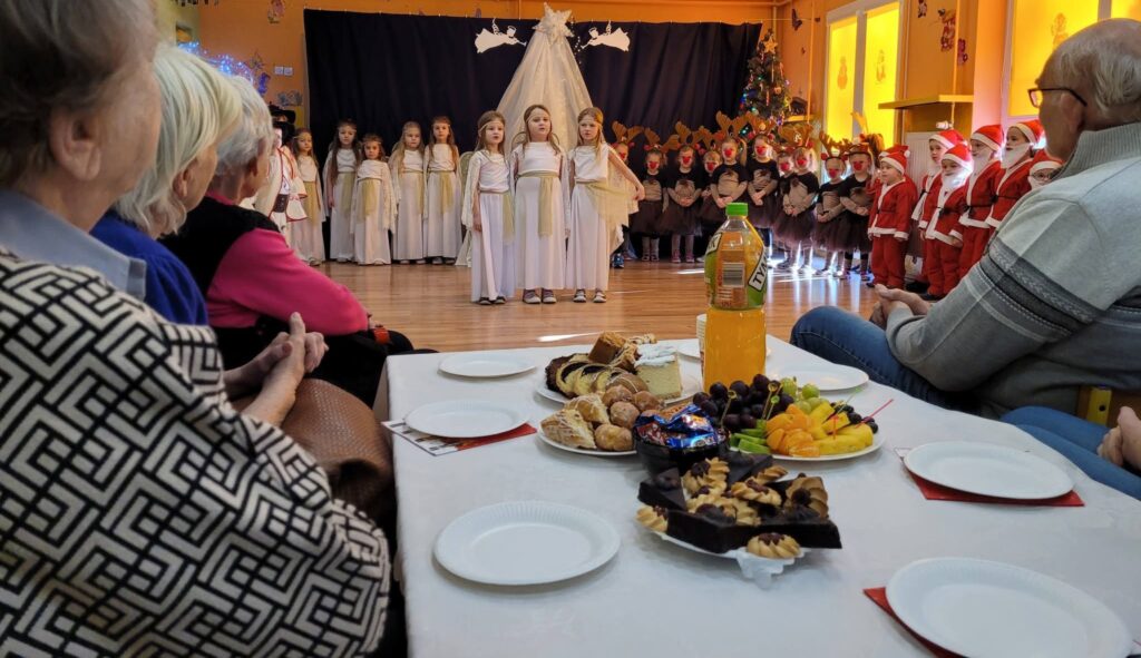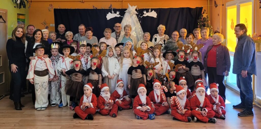 20 stycznia 2026 roku w Gminnym Przedszkolu w Widzewie odbyło się wyjątkowe spotkanie z podopiecznymi Środowiskowego Domu Samopomocy w Ksawerowie, którzy przybyli na czele z Panią Ewą Szulbowską. Dzieci zaprezentowały przygotowane jasełka, a dzięki ich występowi mogliśmy znowu poczuć świąteczny klimat – pełen ciepła, wzruszeń i radosnego kolędowania. Podopieczni ŚDS obdarowali przedszkolaków słodkim upominkiem, natomiast dzieci przygotowały dla naszych gości drobne prezenty. W imieniu przedszkolaków wręczyła je Pani Wicedyrektor Lucyna Kasznicka, z serdecznością podkreślając wdzięczność za wspólne spotkanie. Wspólne chwile, serdeczne rozmowy oraz życzliwa atmosfera sprawiły, że to wydarzenie stało się pięknym dopełnieniem zimowego czasu. Cieszymy się, że mogliśmy ponownie gościć naszych przyjaciół i dzielić się tym, co w przedszkolu najpiękniejsze — dziecięcą spontanicznością, talentem i otwartymi sercami. Dziękujemy za obecność i wspólnie spędzony czas.