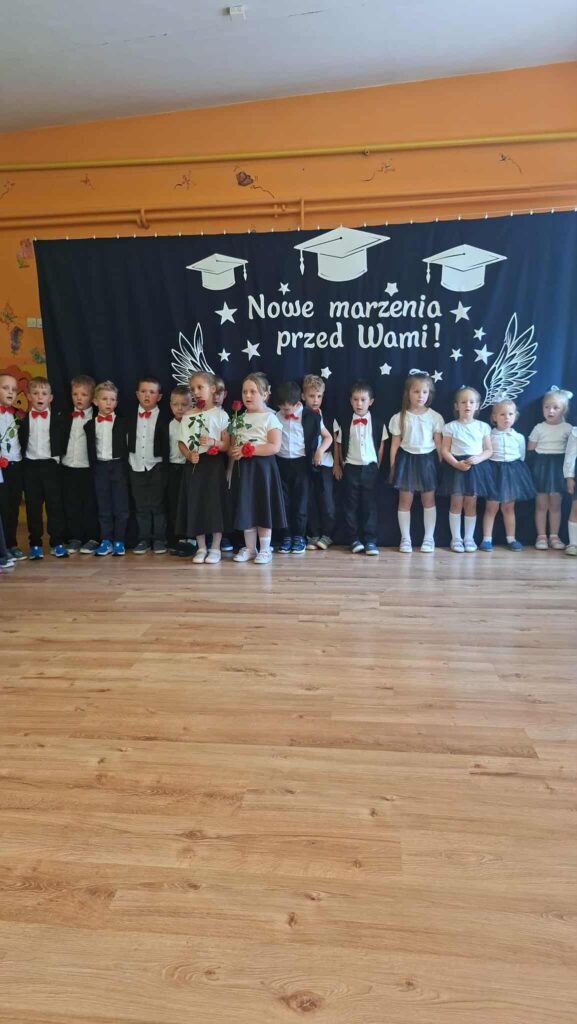 23 czerwca był wyjątkowym dniem dla naszej społeczności przedszkolnej. Tego dnia odbyło się pożegnanie starszaków. Uroczystość rozpoczęła się od Poloneza, który zachwycił wszystkich gości. Kolejno dzieci zaprezentowały program artystyczny. Były wiersze, piosenki i mnóstwo wzruszeń. Na koniec przyszedł czas na wręczenie dyplomów, drobnych upominków i podziękowań. Wszyscy obecni goście byli bardzo wzruszeni, ale przede wszystkim byliśmy bardzo dumni z naszych przyszłych absolwentów. Pożegnania zawsze są trudne, ale to pożegnanie zawierało w sobie obietnice przygody, jaką jest przecież dorastanie. Dlatego ze wzruszeniem w sercach, ale i uśmiechem na ustach życzymy Wam drogie starszaki wspaniałych wakacji i samych sukcesów w szkole.