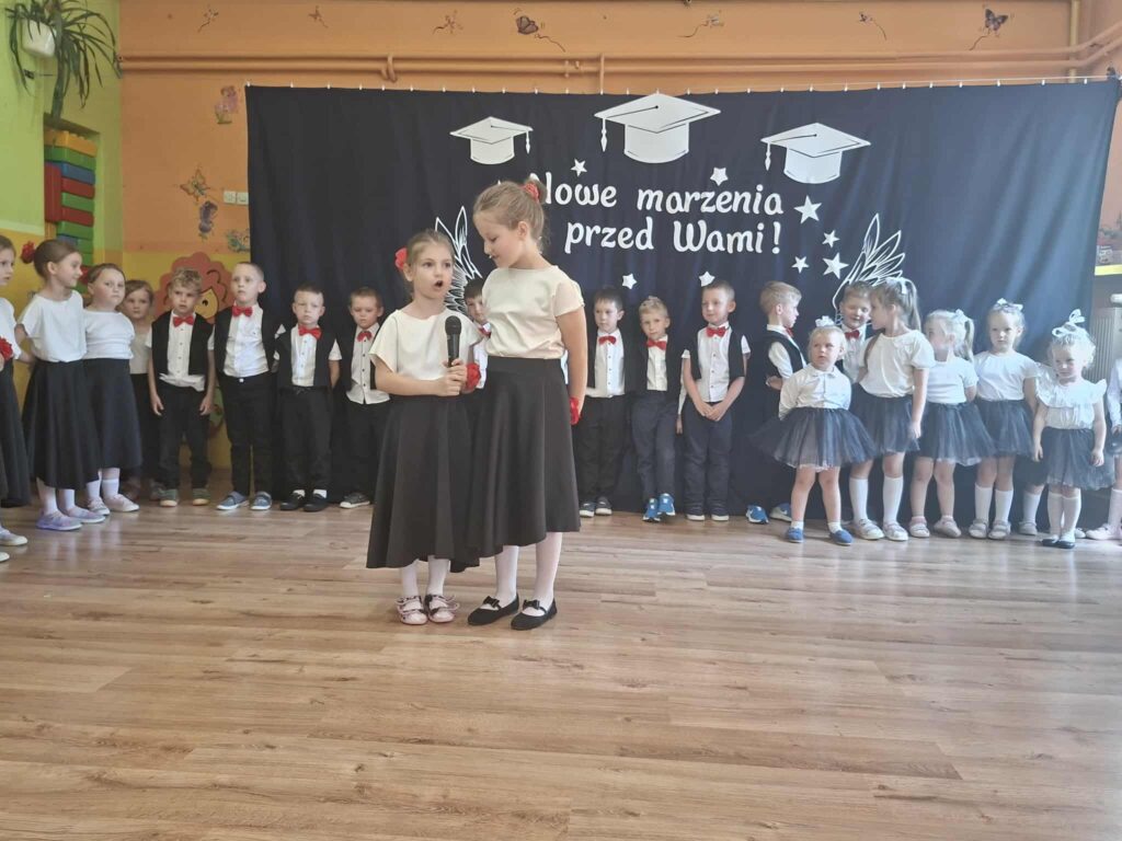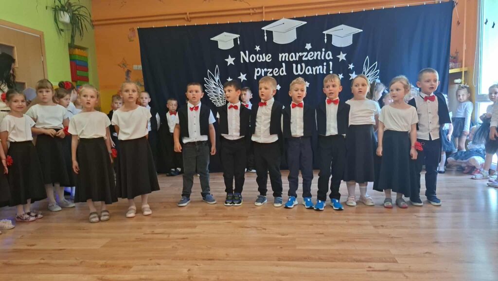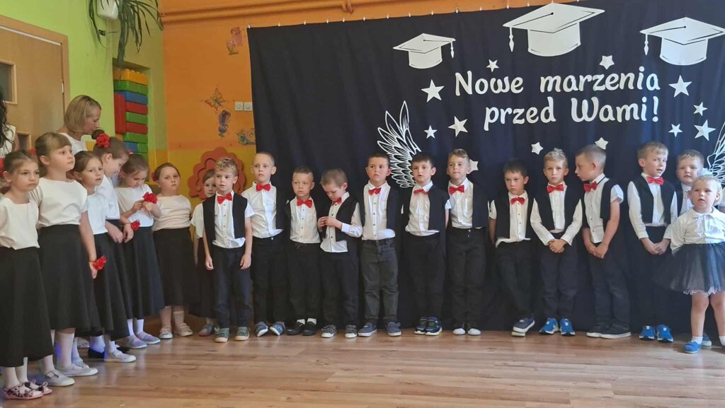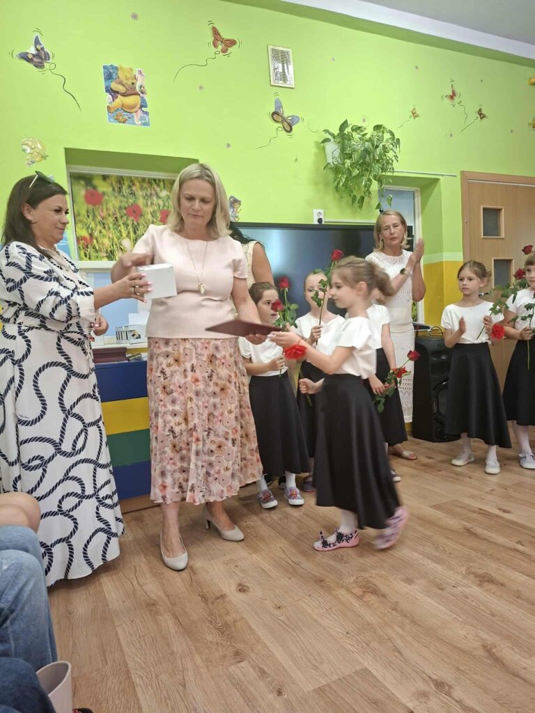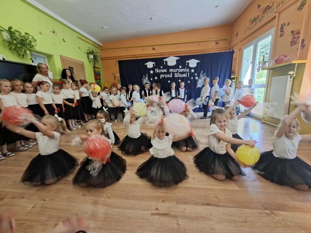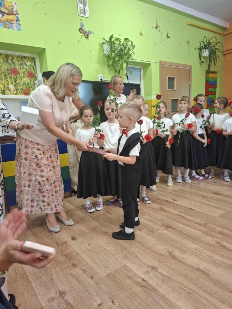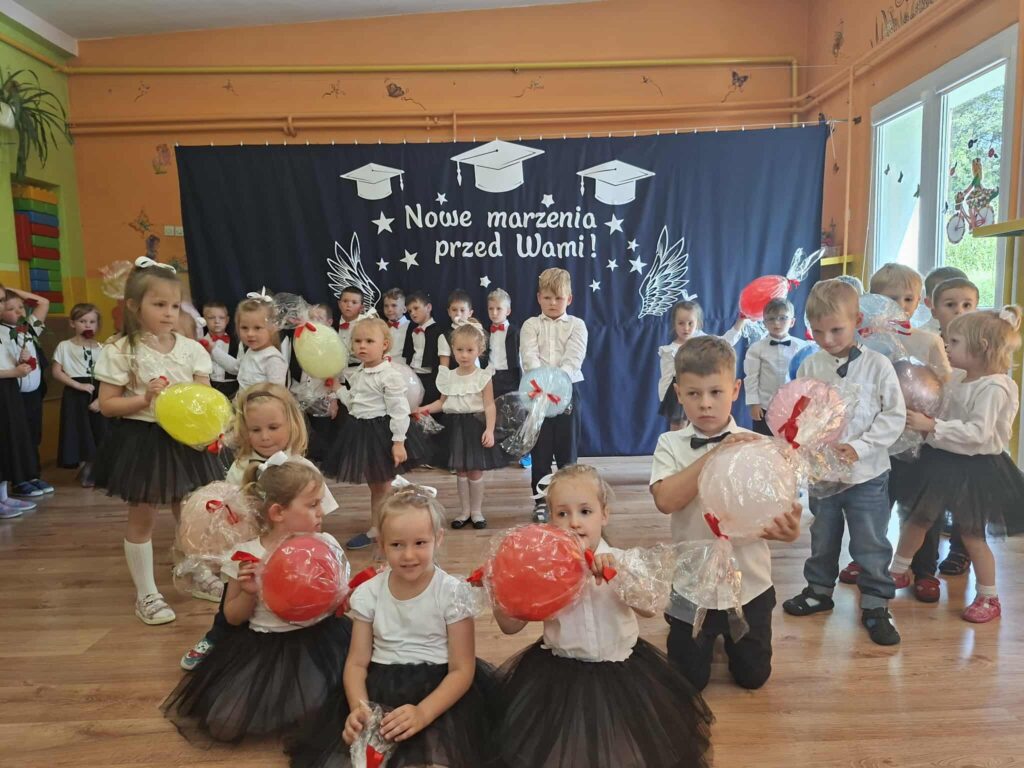 23 czerwca był wyjątkowym dniem dla naszej społeczności przedszkolnej. Tego dnia odbyło się pożegnanie starszaków. Uroczystość rozpoczęła się od Poloneza, który zachwycił wszystkich gości. Kolejno dzieci zaprezentowały program artystyczny. Były wiersze, piosenki i mnóstwo wzruszeń. Na koniec przyszedł czas na wręczenie dyplomów, drobnych upominków i podziękowań. Wszyscy obecni goście byli bardzo wzruszeni, ale przede wszystkim byliśmy bardzo dumni z naszych przyszłych absolwentów. Pożegnania zawsze są trudne, ale to pożegnanie zawierało w sobie obietnice przygody, jaką jest przecież dorastanie. Dlatego ze wzruszeniem w sercach, ale i uśmiechem na ustach życzymy Wam drogie starszaki wspaniałych wakacji i samych sukcesów w szkole.